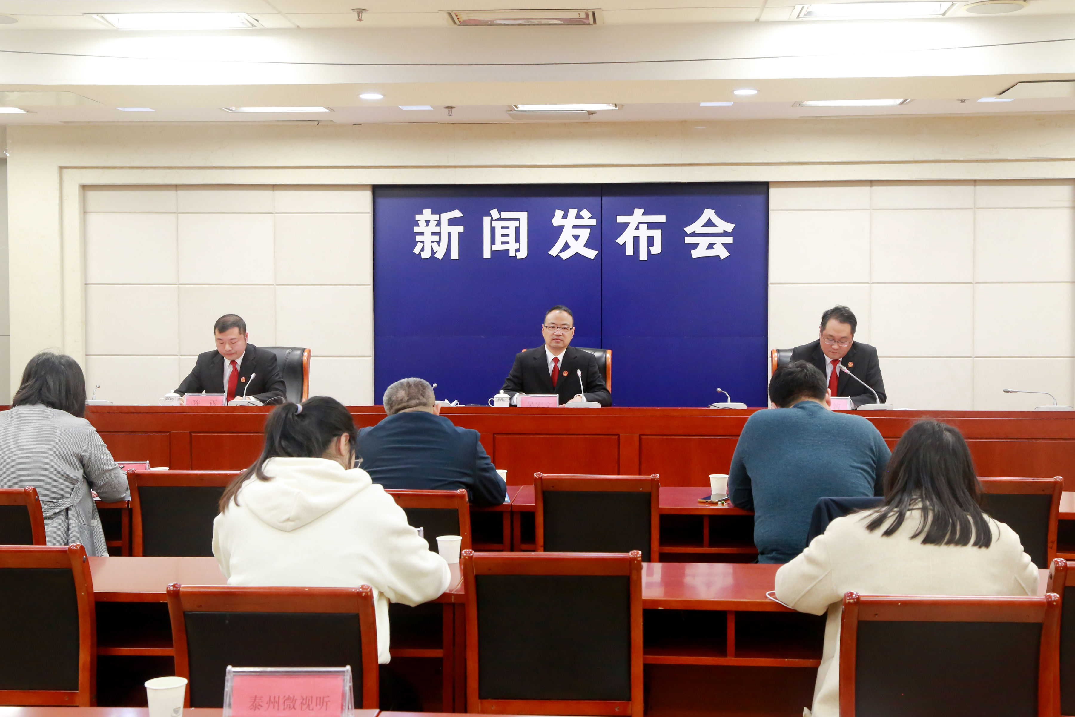 发布会上,泰州中院民四庭庭长吴宏文介绍适用惩罚性赔偿条款保护消费者权益的相关情况,会议由新闻办主任于波主持。