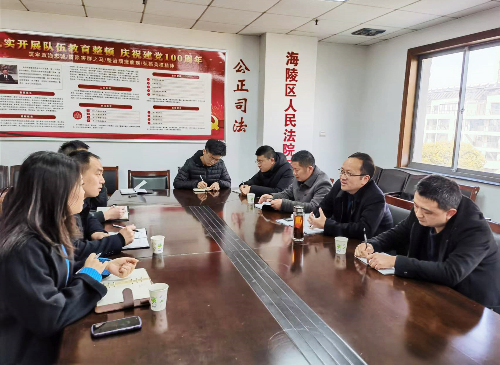 落实院长会议精神 深化调解前置工作——市中院民一庭与海陵法院民一庭座谈进行时