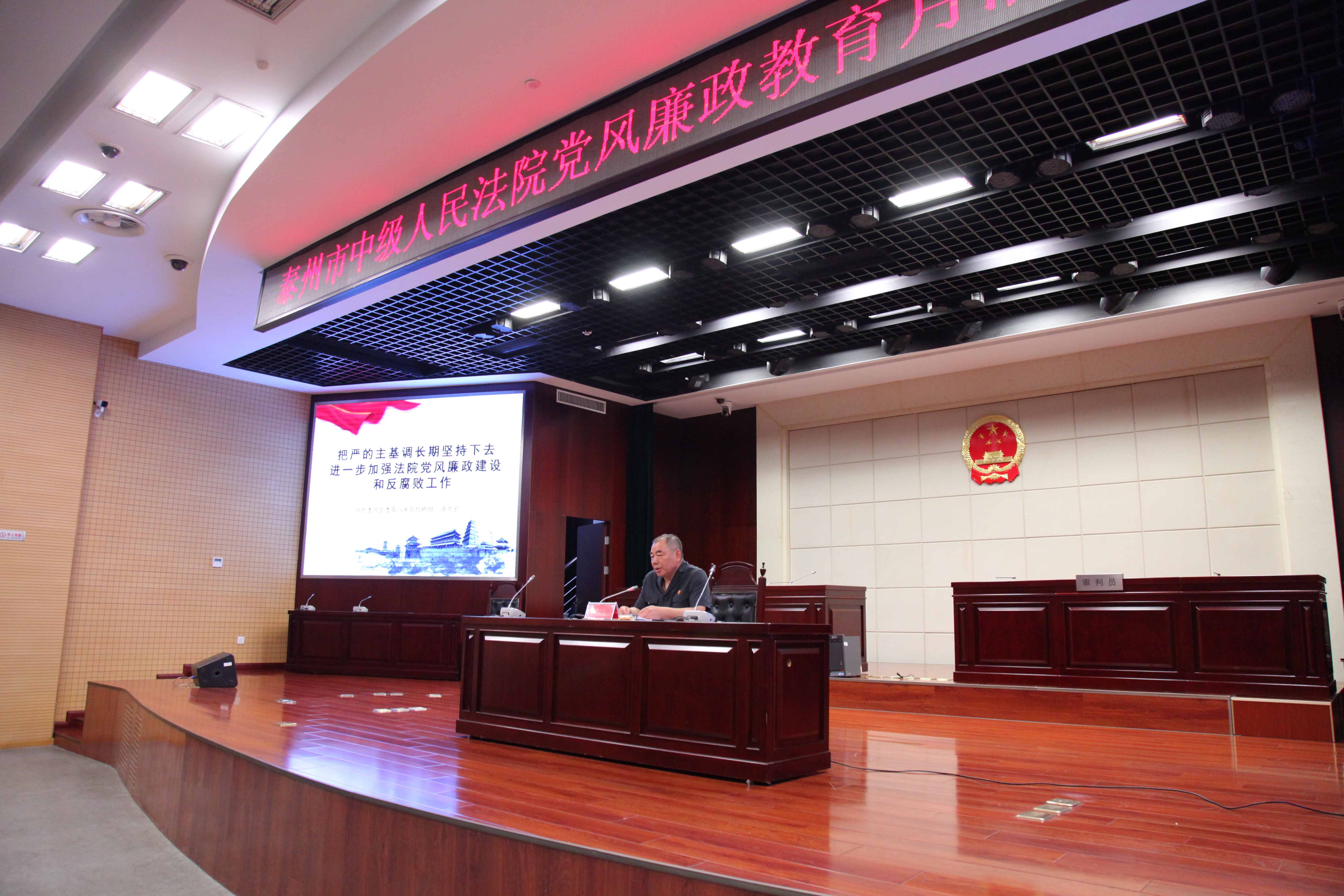 9月16日下午,市纪委监委第八派驻纪检监察组组长、市中院党组成员汤日宏,以《把严的主基调长期坚持下去,加强法院党风廉政建设和反腐败工作》为题,为全体党员上了一堂生动的廉政党课。