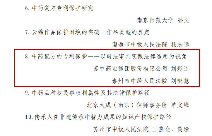 刘彩连、刘晓慧撰写的《中药配方的专利保护——以司法审判实践法律适用为视角》喜获二等奖