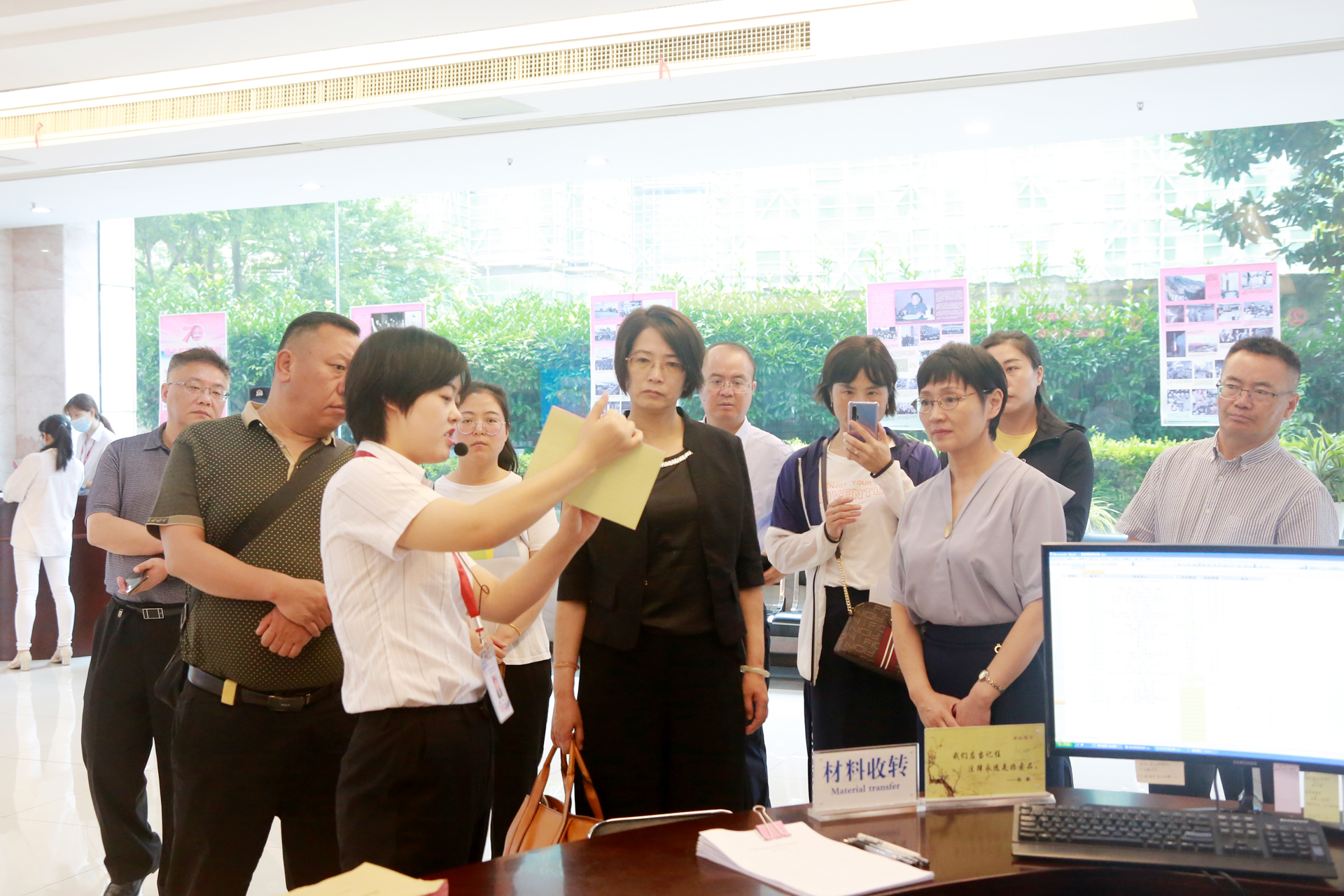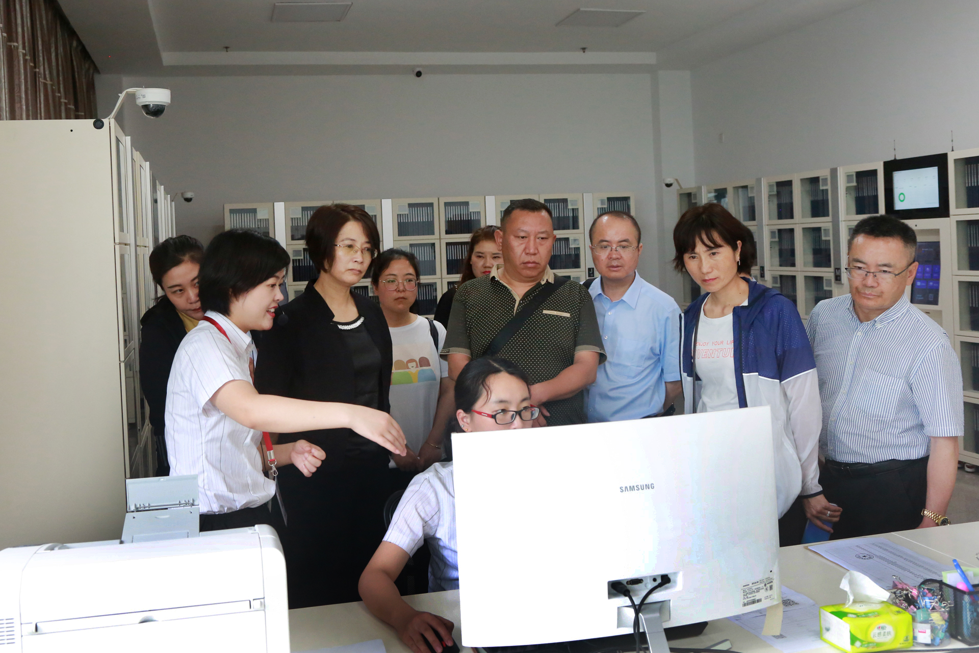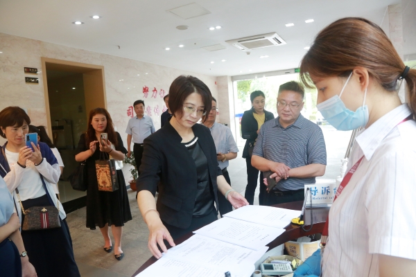 考察期间,李世蓉院长一行在宋亚平副院长陪同下对泰州中院、姜堰法院诉讼服务中心进行了参观,对诉导岗、立案录入岗、卷宗扫描岗、材料收转岗等功能区的运作流程进行了调研,对智能法庭资源管理系统、智慧送达系统、智能卷宗中间柜系统等审判服务事务进行了考察。