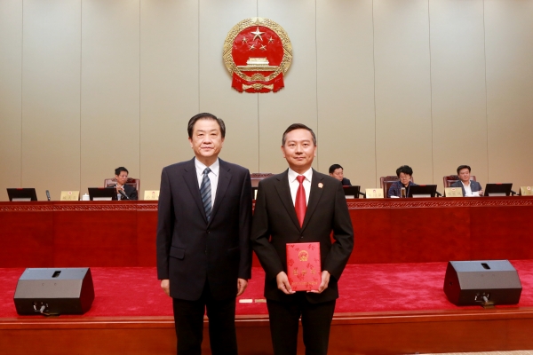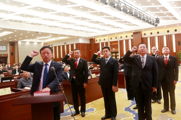 市人大常委会常务副主任、党组副书记杨杰向新任命法官颁发任命书,现场举行了宪法宣誓仪式。