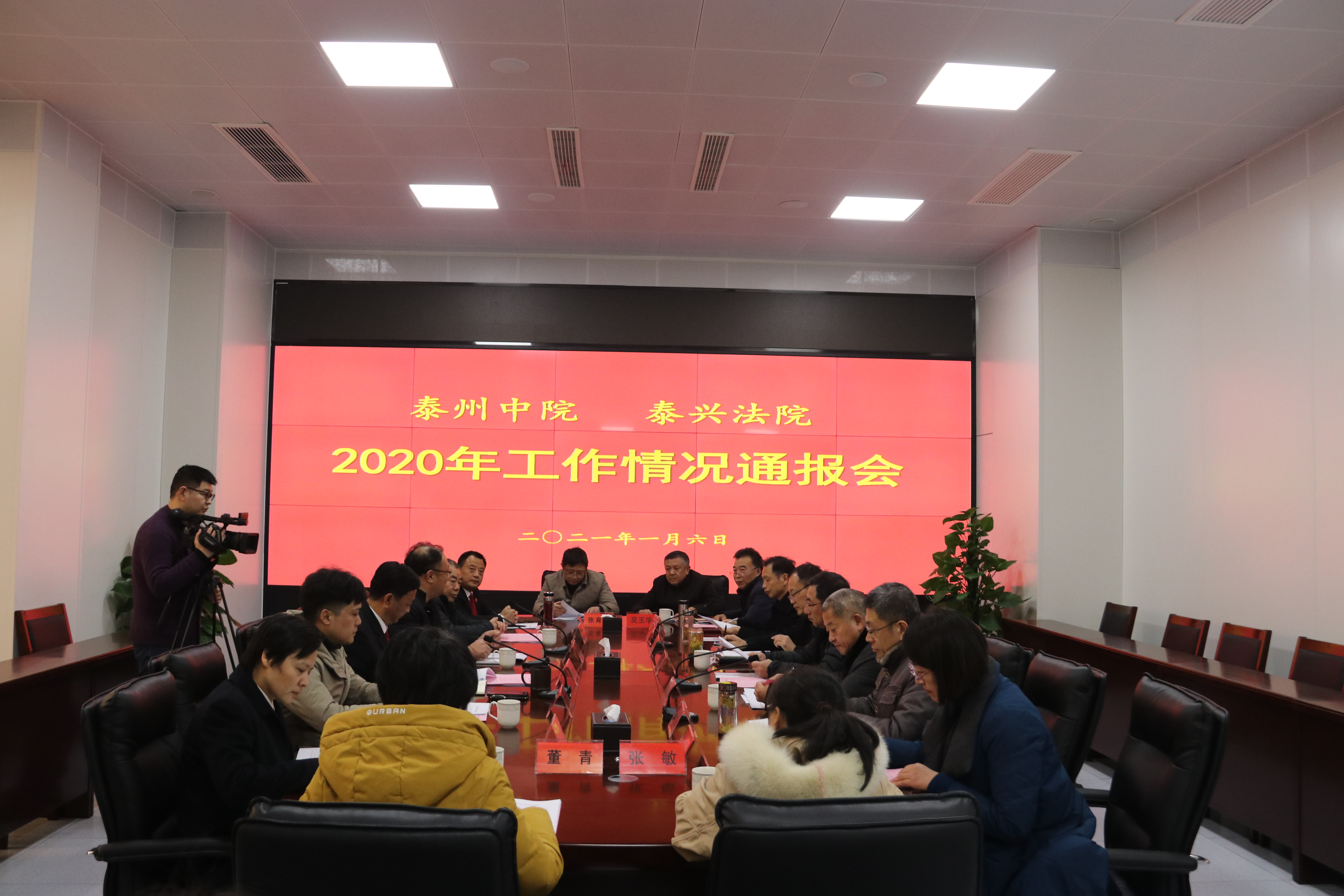 会上,陈卫兵副院长围绕“做好疫情防控,为双胜利提供优质保障;强化履职担当,服务保障泰州高质量发展;履行审判职能,切实维护社会和谐稳定;践行为民宗旨,积极回应人民群众关切;深化司法改革,促进审判体系和审判能力现代化;打造过硬队伍,全面提升法院司法形象”等六个方面通报了2020年全市法院工作情况。