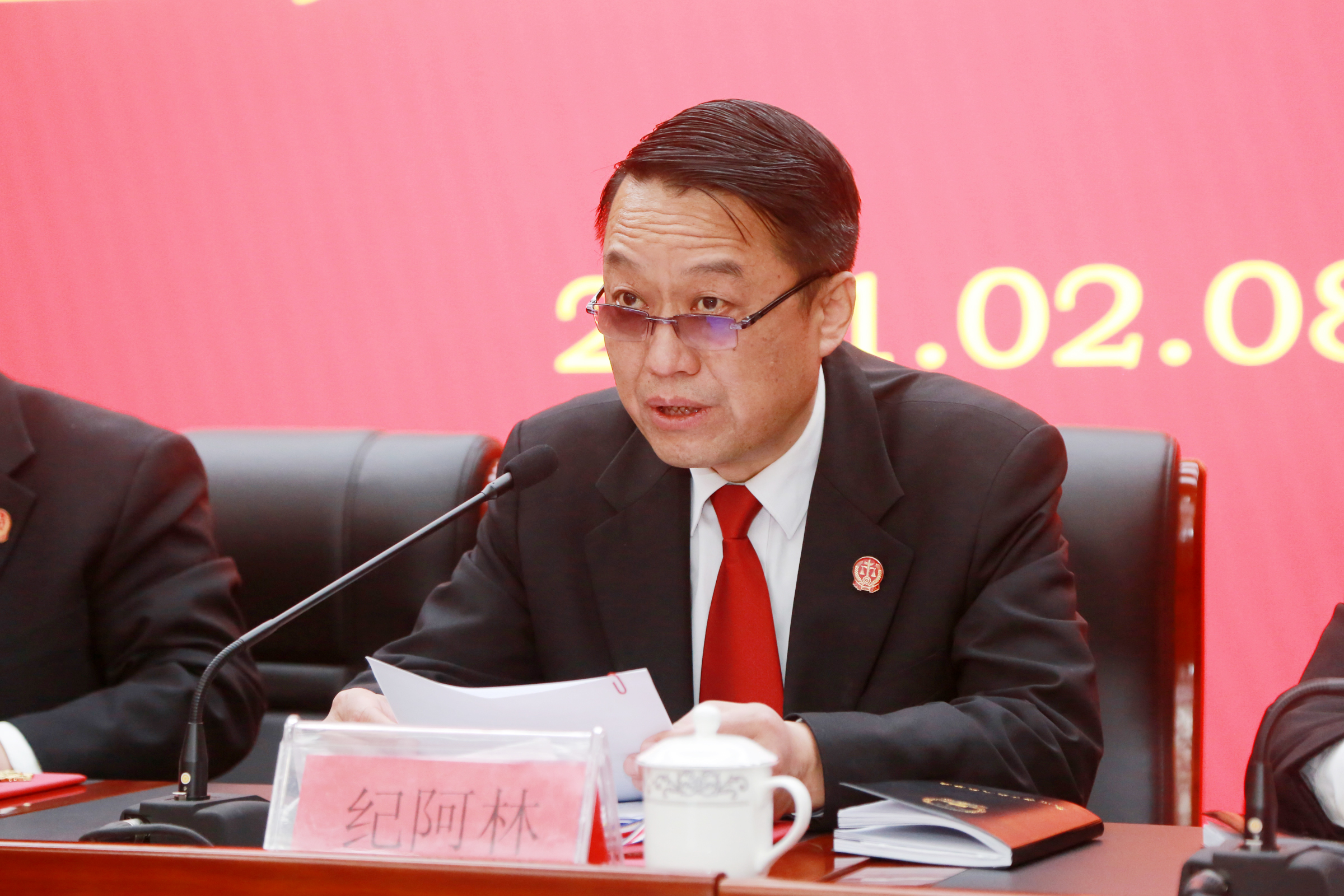 党组副书记、副院长纪阿林主持会议并传达市委常委、政法委孔德平书记的批示。