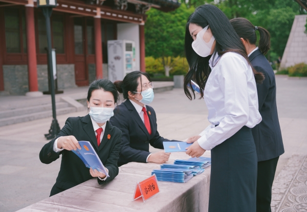 揭牌仪式结束后,市文广旅局工作人员和医药高新区法院法官接受游客现场法律咨询,并发放普法宣传资料。