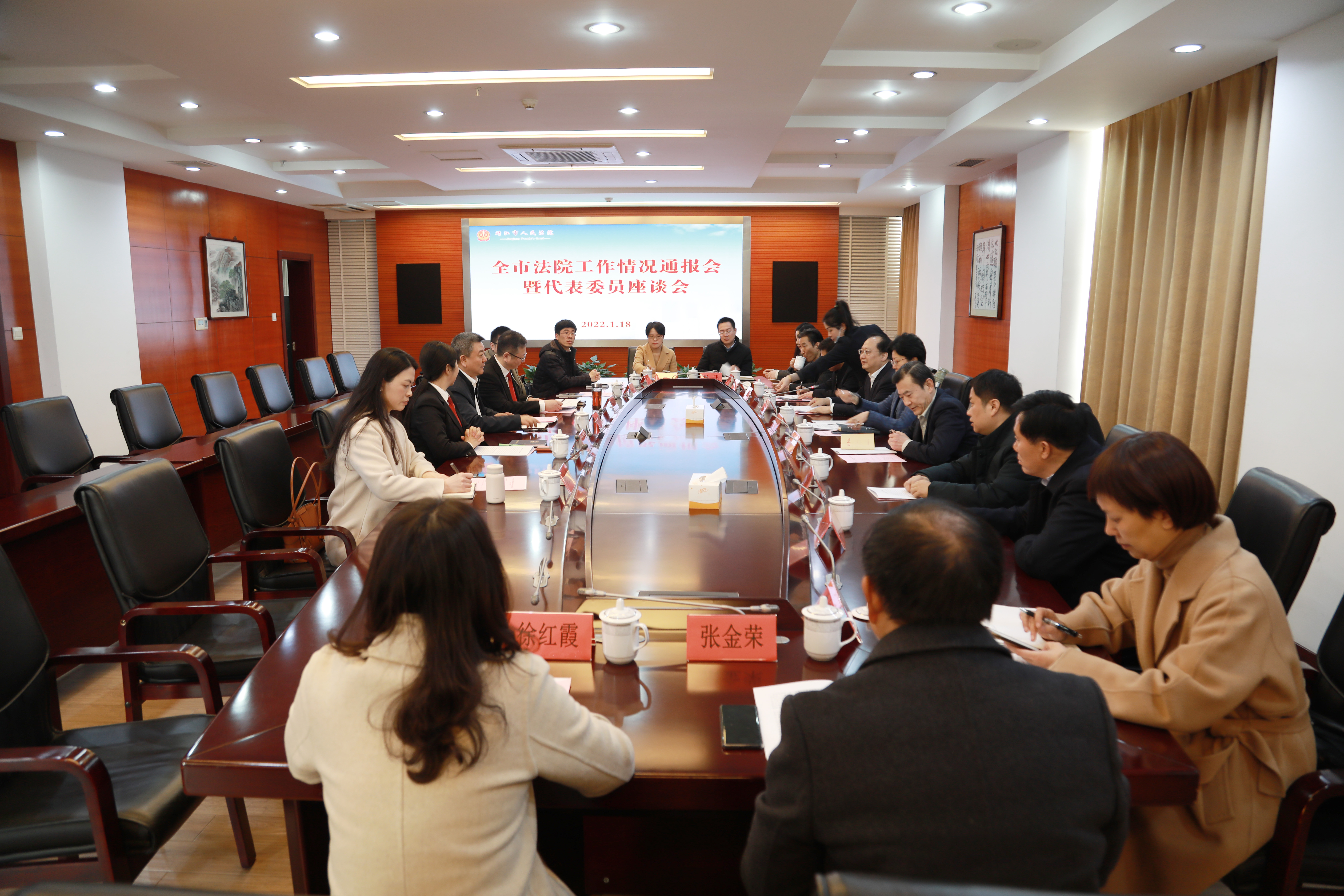 1月18日下午,市中院副院长殷继东一行到海陵法院召开全市法院工作情况通报会暨代表委员座谈会。海陵区人大常委会副主任徐志仑,海陵区政协常委童鹏,海陵区人大常委会法工委副主任王婷,部分泰州市人大代表参加座谈。