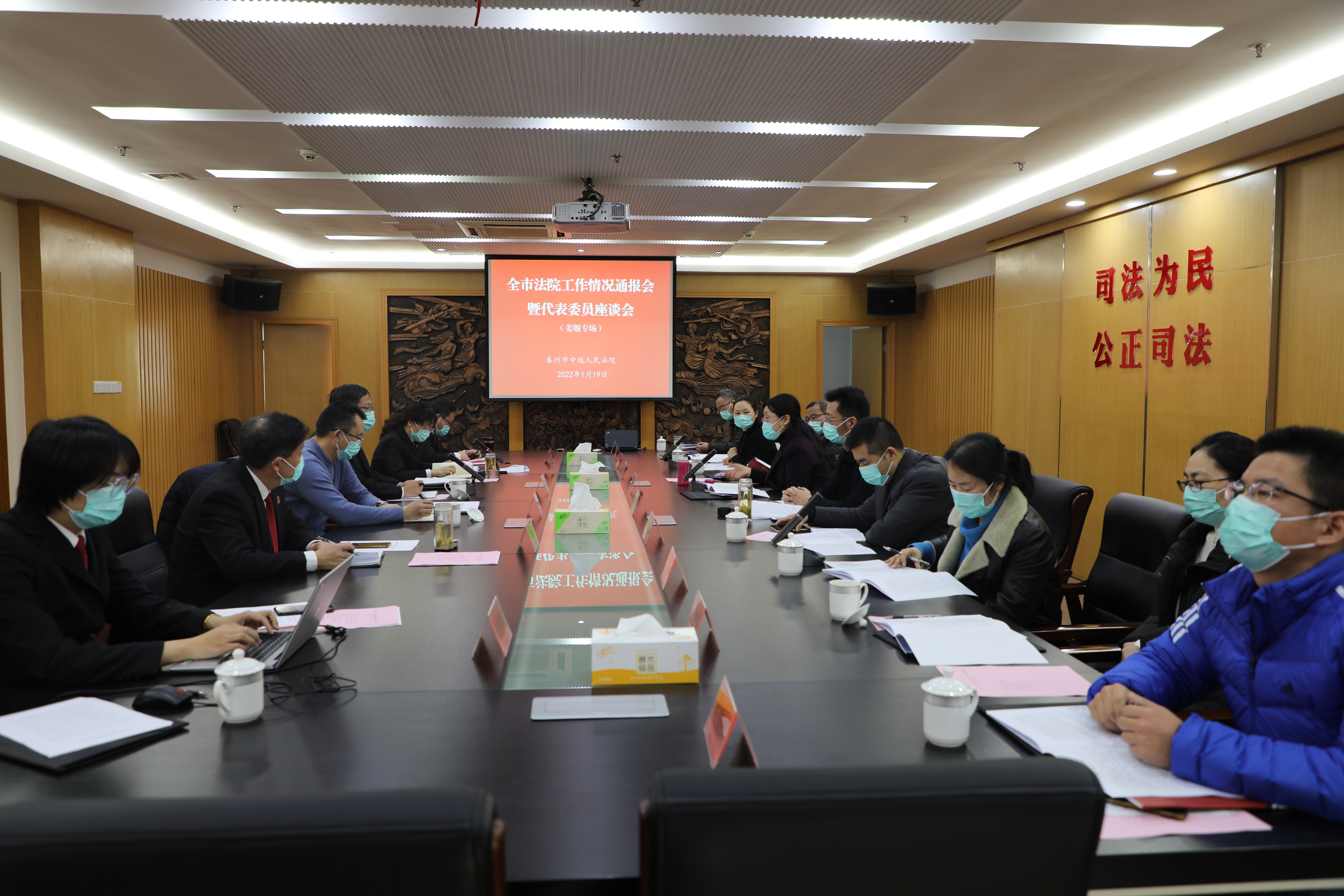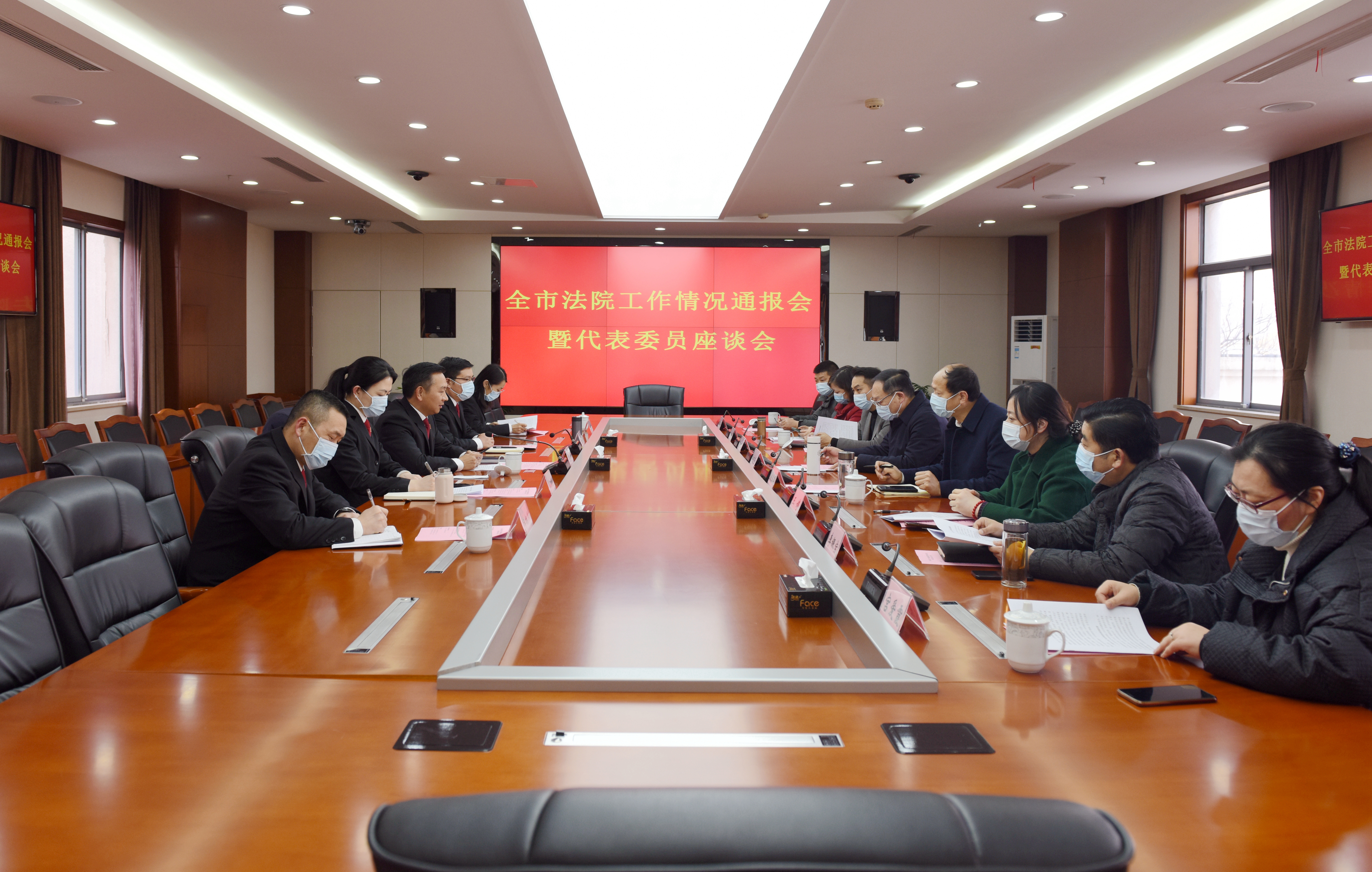市中院领导从“围绕中心大局,依法护航泰州高质量发展;维护和谐稳定,助推更高水平平安泰州建设;践行为民宗旨,持续提升群众司法获得感;深化改革创新,不断提升审判质效和公信力;从严管党治院,努力打造过硬法院队伍”五个方面,通报了全市法院一年来工作开展情况。