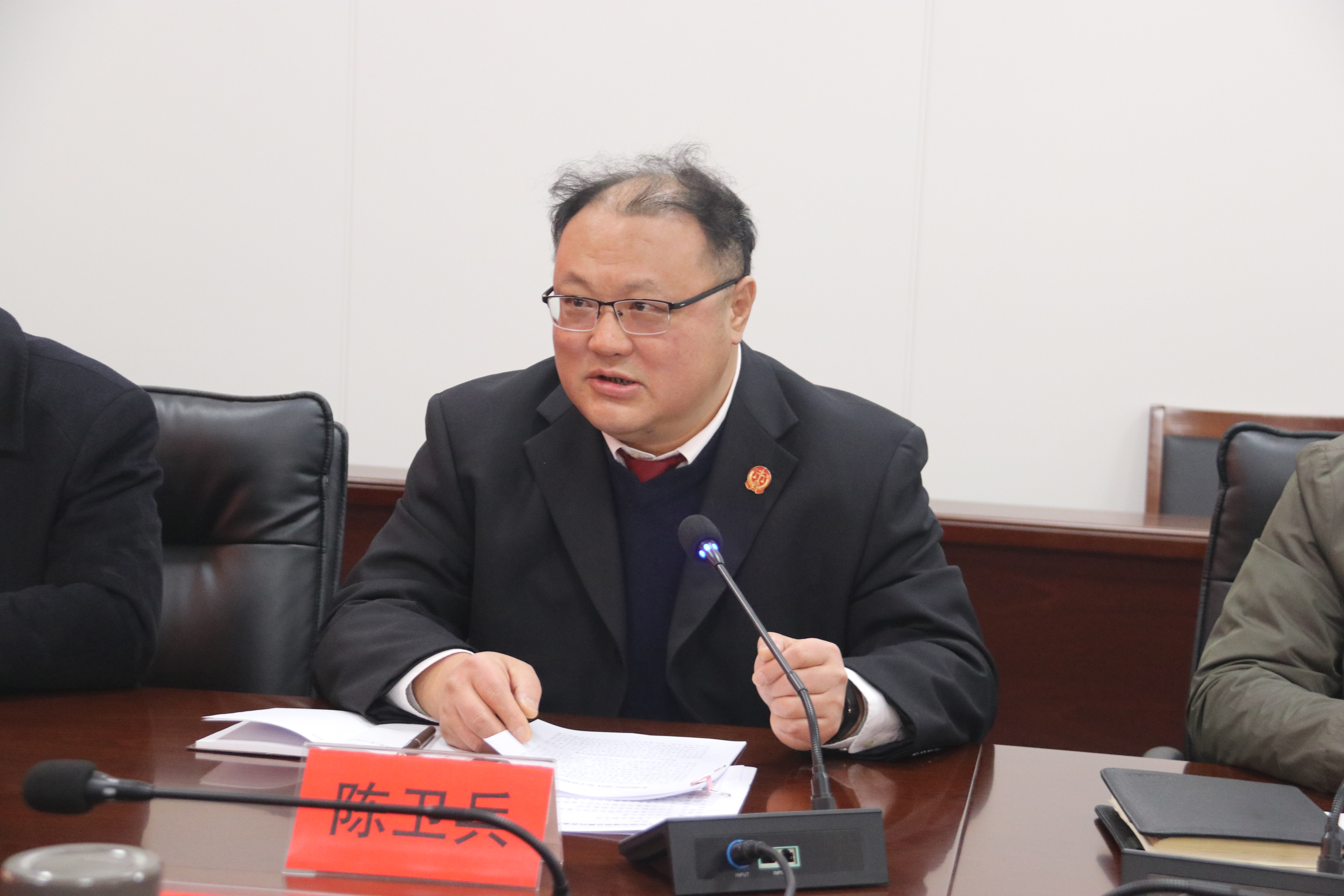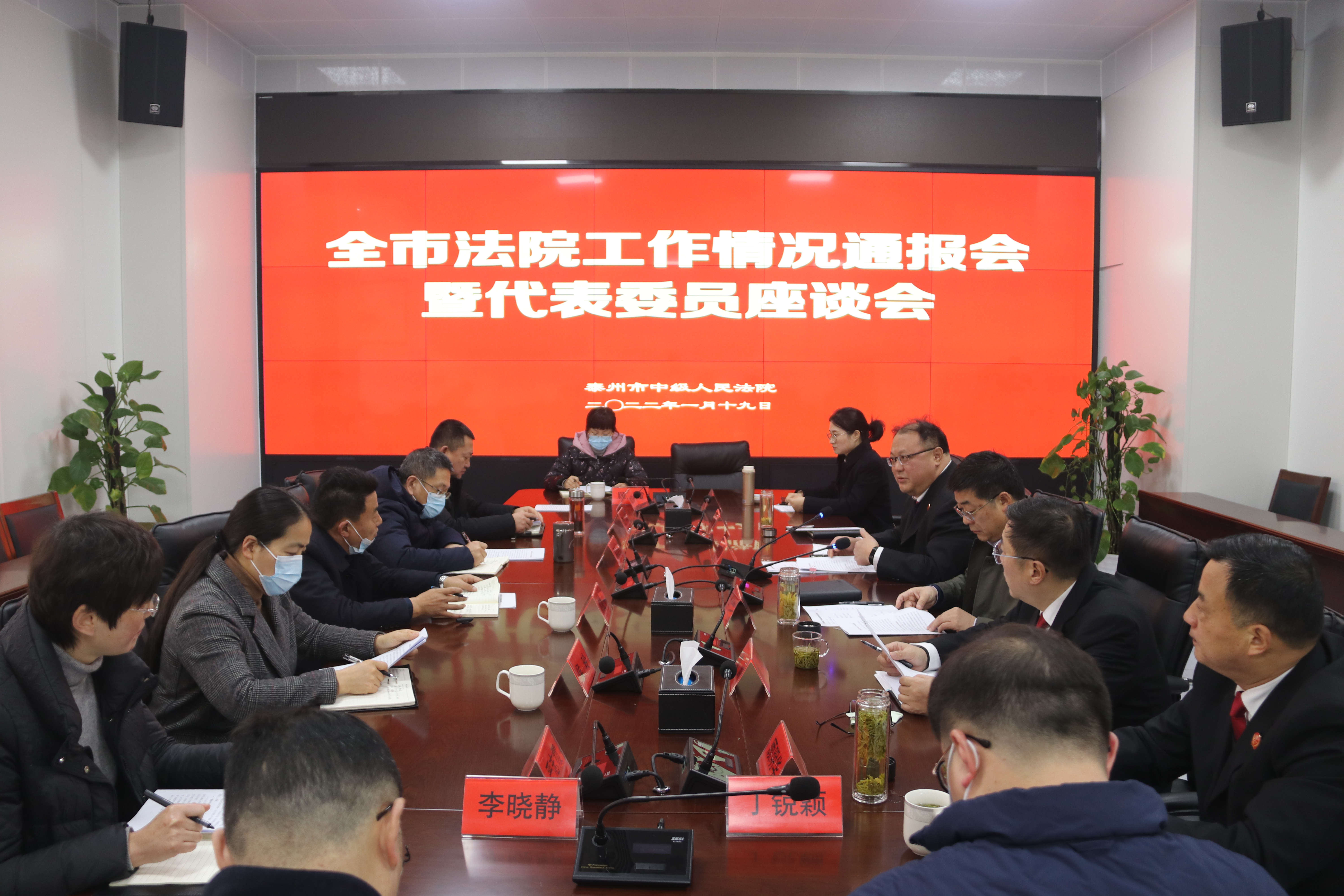 1月19日上午,市中院党组成员、副院长陈卫兵一行到泰兴法院召开全市法院工作情况通报会暨代表委员座谈会。泰兴市人大常委会副主任王长健,泰兴市政协副主席刘建及市人大常委会、市政协职能科室负责人,部分泰州市人大代表、政协委员参加座谈。