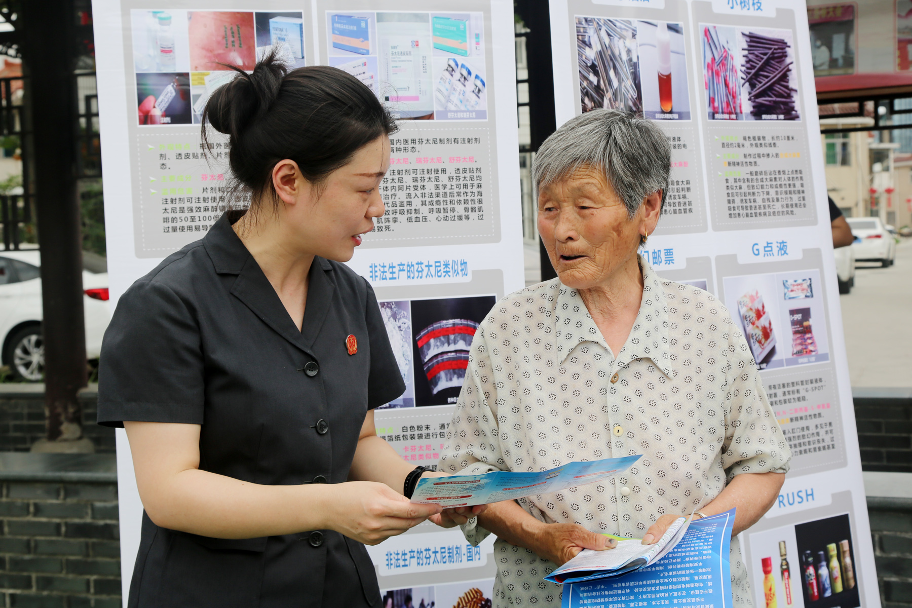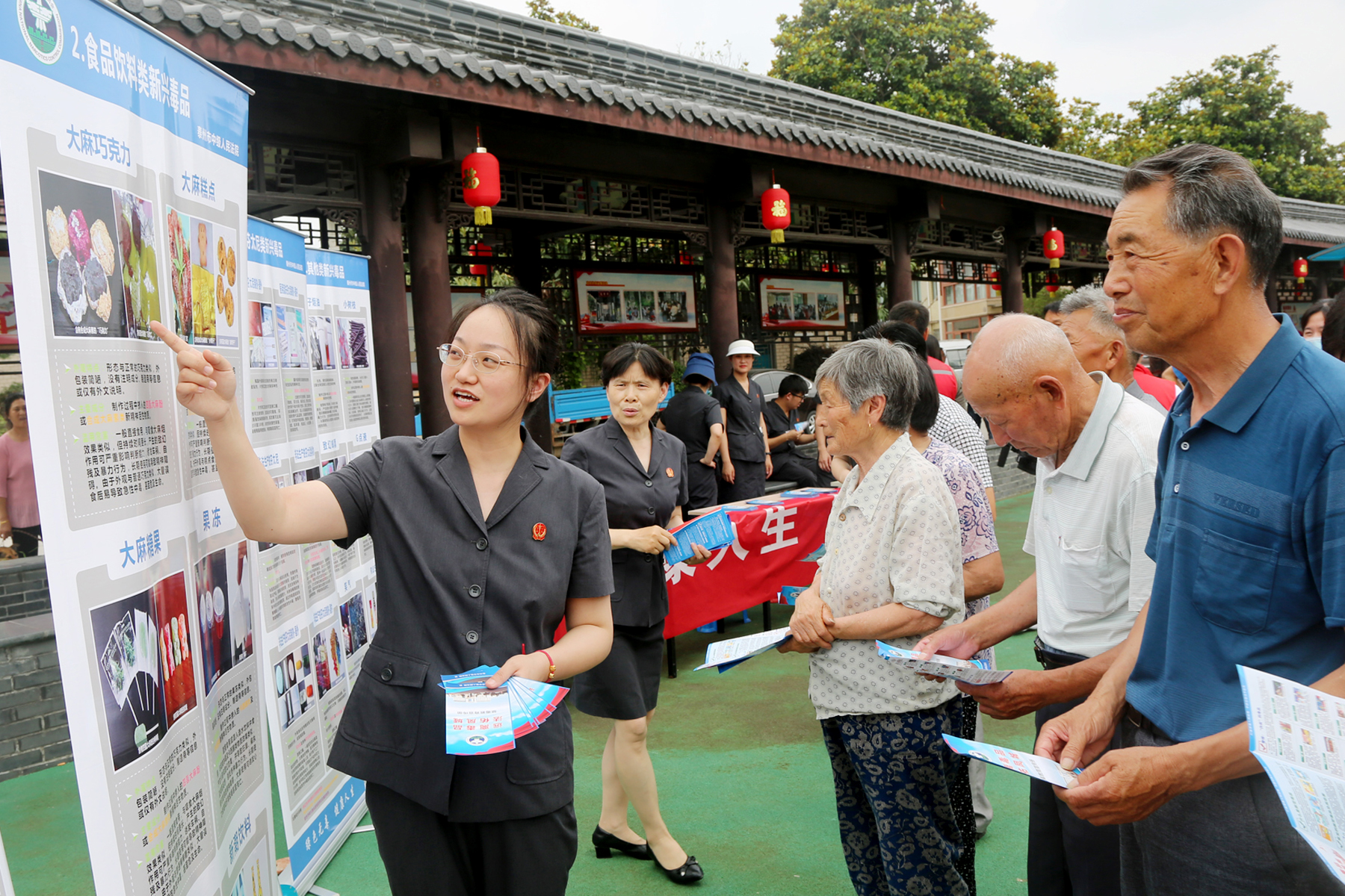 活动现场,市中院刑一庭干警与党员、社区工作人员通过横幅悬挂、法律咨询、发放禁毒宣传手册等方式,向社区居民进行禁毒宣传。