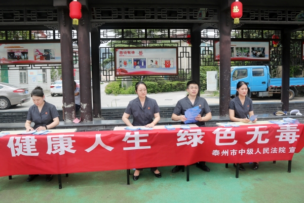 在“国际禁毒日”来临之际,市中院刑一庭的干警与老干部支部的党员来到海陵区城南街道新胜社区开展“防毒意识入人心 法治宣传不‘毒’行”主题禁毒宣传活动。